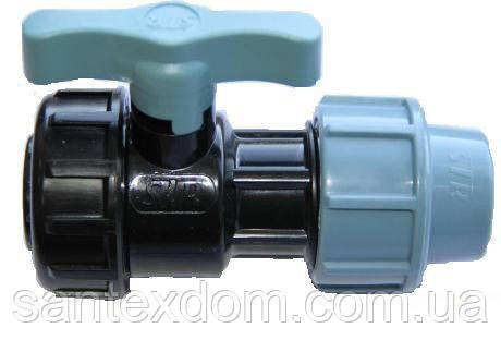 Крани кульові поліетиленові (компресійні) слугують для перекриття та подавання потоку води в системах трубопроводу через поліетиленові труби, що транспортують холодну воду в системах поливу та зрошення на ділянках, фермерських господарств, приватних секторів та в інших місцях, де використовуються поліетиленові труби або поливальні шланги. Виготовлений з ударостійкого гомосполімеру. Робочий тиск 1.6 МПа (16 Атм) за температури 20 С. Температура робочої седи 45 градусів.